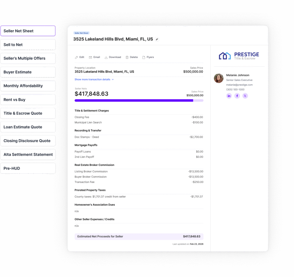 Deeply customized for your agency, to include your logo, company title agents, fees and underwriter rates. The platform can also be customized to accommodate many different fee schedules.